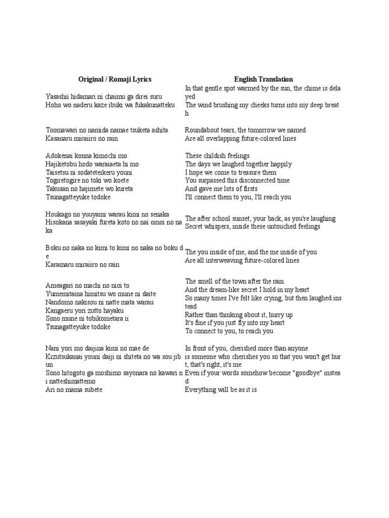 Mays Kimi Ni Todoke Lyrics English And Indonesian Translations Nakari Amane